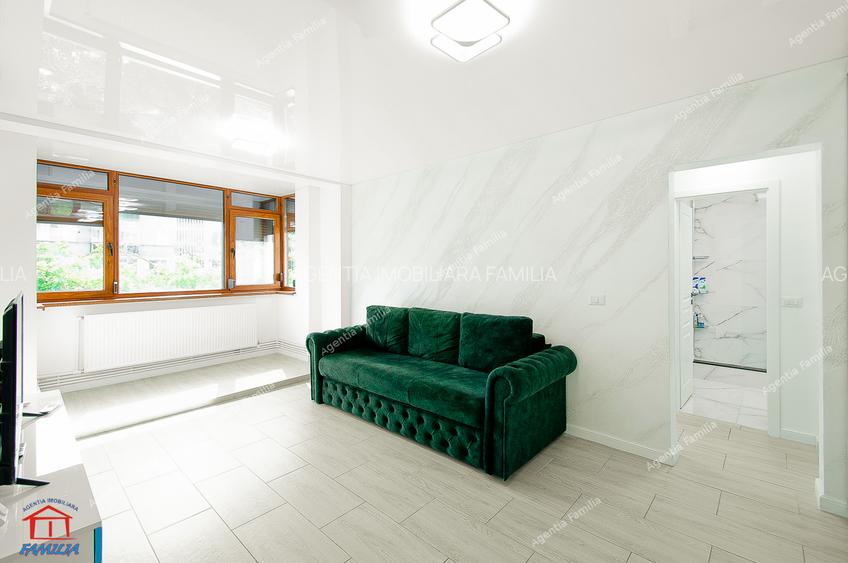 Cu o suprafata totala utila de 48 mp din care 4 mp balconul, apartamentul, complet renovat cu materiale de cea buna calitate si respectand un design interior adaptat noilor tendinte care se pliaza perfect cerintelor unei familii, dispune de urmatoarele dotari: izolatie termica exterioara din polistiren extrudat, tamplarie PVC cu geam termopan, de calitate, centrala termica pe gaz, aer conditionat, balcon in dreptul sufrageriei inchis cu tamplarie de termopan, rulouri exterioare din PVC, instalatie electrica si sanitara refacuta, nou si curat, cu usi noi din panel la interior, usa metalica la intrare, parchet, gresie, faianta, tavane extensibile, zugraveli decorative, apartamentul este pregatit sa-si intampine noii proprietari.