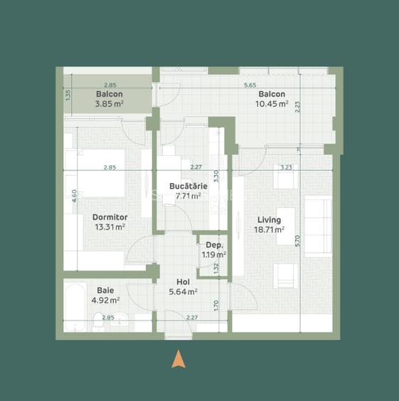 Apartament 2 Camere Tip C 61.93mp + balcon 3.85mp, decomandat in Frumoasa
