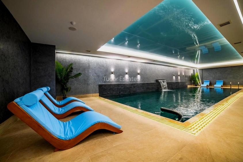 Apartament mobilat si utilat in bloc cu paza 24/7, piscina interioara si sauna