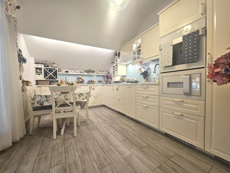 Bucataria vine la pachet cu tot ce are nevoie o familie, este complet mobilata si utilata, pana la cel mai mic detaliu (plita, cuptor electric, hota incorporata, frigider, cuptor microunde, suport de vinuri , masina de spalat vase si lista continua).