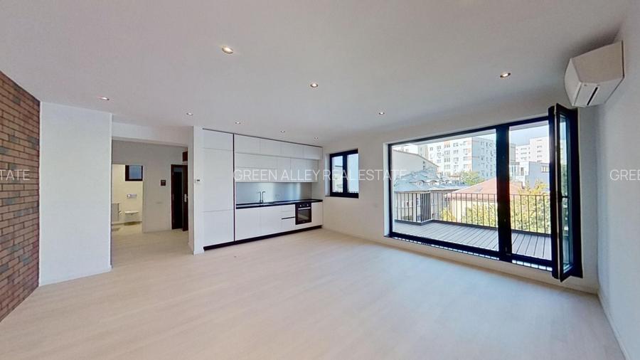 Green Alley Real Estate iti prezinta pentru cumparare acest apartament cu 2 camere, situat la ultimul etaj intr-un imobil de tip boutique, cu doar trei niveluri, care face parte din complexul rezidential Grand AV 133, construit in 2022, la cele mai inalte standarde, in zona Polona - Stefan cel Mare, cu deschidere imediata in Dorobanti, Piata Victoriei si Piata Romana, dar si spre zona veche a Bucurestiului, cu cladiri interbelice, cu arhitectura remarcabila, parcurile Icoanei si Ioanid, restaurante si terase boeme.