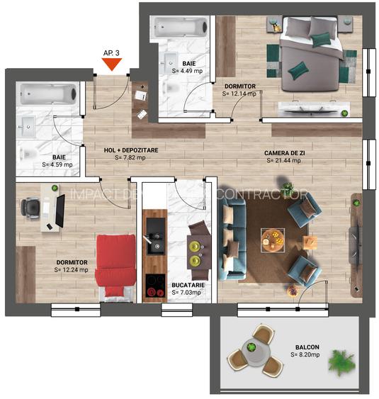 Apartament 3 camere - bucatarie inchisa @ Greenfield Residence Baneasa