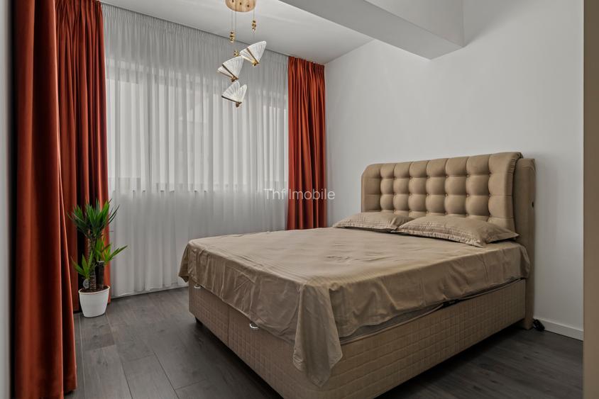 - Un dormitor matrimonial complet mobilat, cu baie proprie și dressing (22 mp total), cu priveliște superbă și orientare cardinală Vestică.