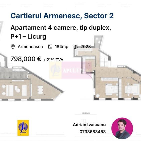 Apartament 4 camere, tip duplex, P+1 – Licurg