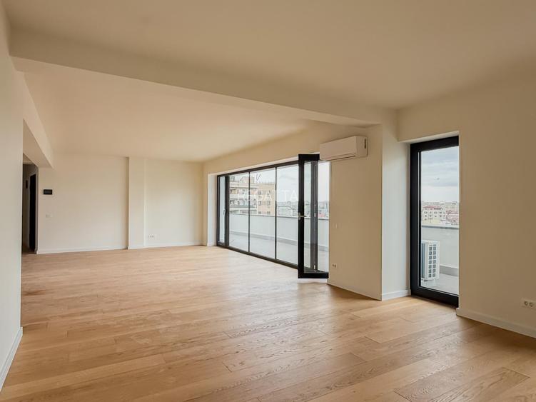 Penthouse-ul se vinde la cheie, liftul opreste direct in apartament, are 3 camere foarte spatioase, o bucatarie generoasa si zona de dinning, un living spectaculos, 2 bai, 2 dormitoare si o terasa-loggie foarte generoasa plus doua balcoane; amplasamentul ofera liniste si intimitate, chiar in inima orasului, cu o vedere frumoasa asupra Bucurestiului istoric.