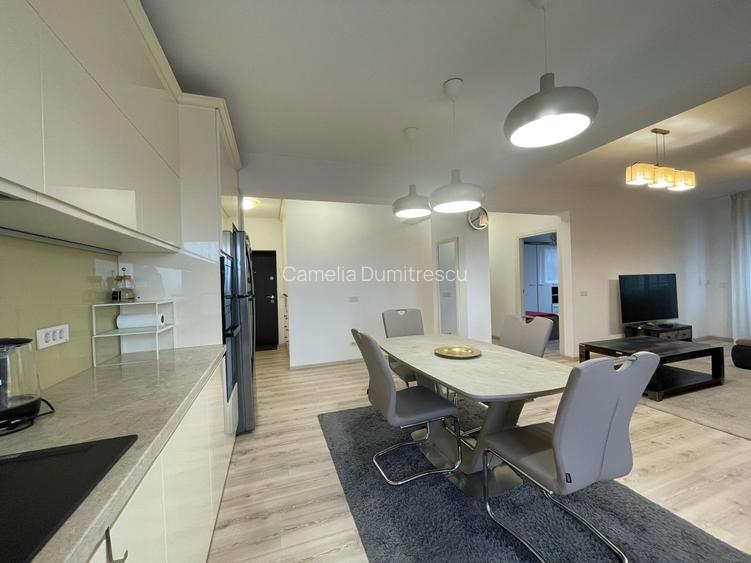Zona de zi este amenajată în concept open-space, cu o bucătărie realizată pe comandă, complet mobilată și utilată, îmbinând armonios estetica rafinată cu funcționalitatea. Finisajele sunt premium, atent alese de proprietar, reflectând un stil elegant și contemporan.
