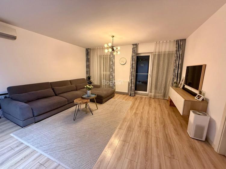 Apartamentul este luminos, bine întreținut și amenajat într-un stil contemporan, cu tonuri neutre și accente calde.