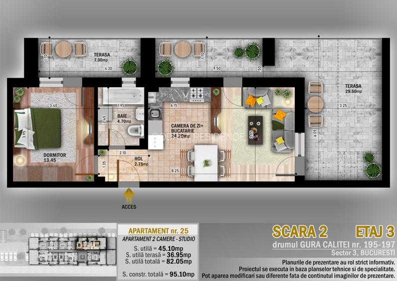 apartament 2 camere studio cu 2 terase foarte mari si frumoase