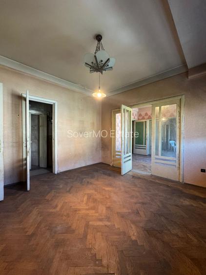 Sovermo Estate vă propune un apartament cu adevărat special, situat într-o clădire cu arhitectură interbelică, ideal pentru cei care apreciază eleganța clasică și istoria autentică a Bucureștiului. Apartamentul are o suprafață de 73 mp, este decomandat și necesită renovare completă, oferind viitorului proprietar libertatea de a-l reinterpreta și personaliza. Imobilul păstrează detalii originale din perioada interbelică, extrem de apreciate de străinii care caută experiențe de locuire cu identitate: uși mari, impunătoare, tavane înalte, camere luminoase și o compartimentare fluidă, care permite trecerea dintr-o cameră în alta, creând o senzație de continuitate și spațiu. Cele 4 camere generoase oferă multiple posibilități de amenajare – locuință personală, reședință de tip boutique sau investiție pentru închiriere pe termen scurt, adresată celor care doresc să trăiască „în interiorul istoriei” acestui oraș vibrant. Balconul completează armonios apartamentul, fiind un spațiu ideal pentru relaxare. Acest apartament reprezintă o oportunitate rară de a reda viață unui spațiu cu suflet, unde farmecul interbelic poate fi pus în valoare printr-o renovare atentă, transformându-l într-o locuință cu adevărat memorabilă, extrem de atractivă pentru publicul international