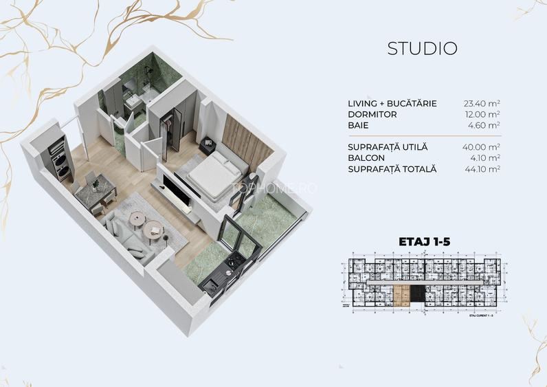 Metrou Berceni 5-12 min - 2 camere tip Studio 44 m2, in constructie