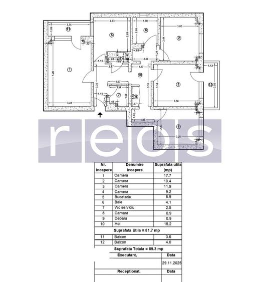 REOS GROUP, va propune spre vanzare un apartament superb impartit, de 4 camere, decomandat, suprafata utila 81,7 mp + 2 balcoane in suprafata totala de 7,6 mp, in total 89,3 mp
