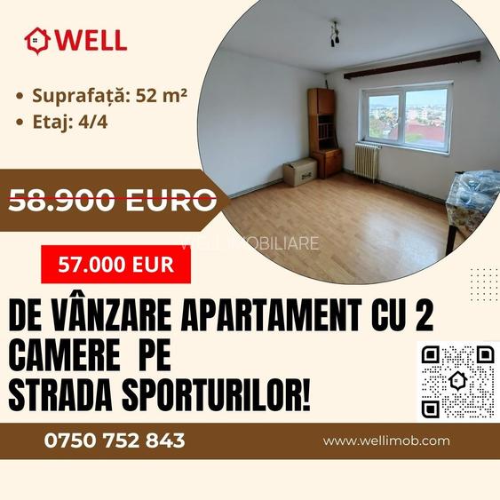 Apartament cu două camere de vânzare în Sfântu Gheorghe, pe strada Sporturilor!