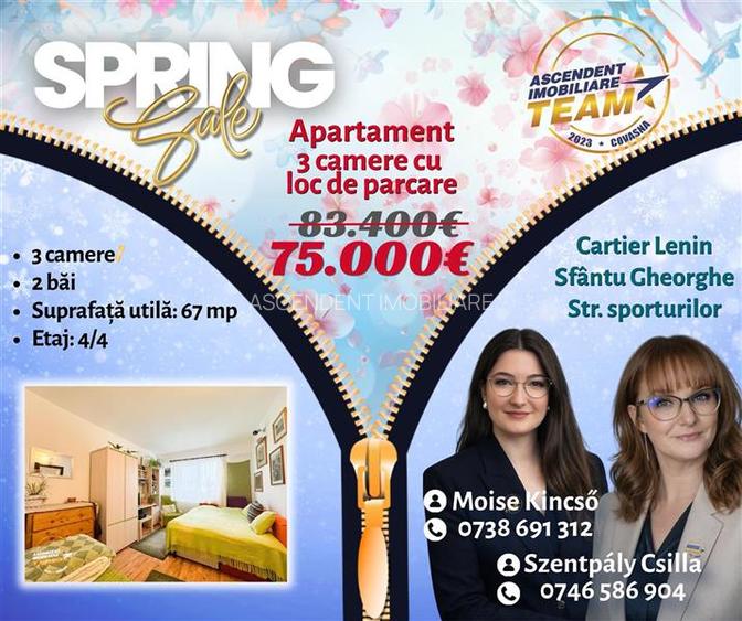 FILM&TUR 3D!! Apartament cu 3 camere luminos, loc parcare, zona Lenin, Sfantu Gh