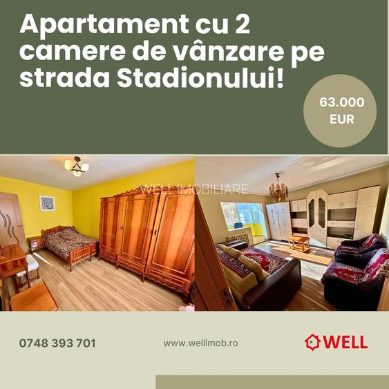 Apartament cu 2 camere, bloc din cărămidă, de vânzare pe strada Stadionului!