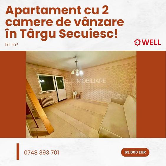 Apartament cu 2 camere de vânzare în Târgu Secuiesc, pe strada Stadionului!