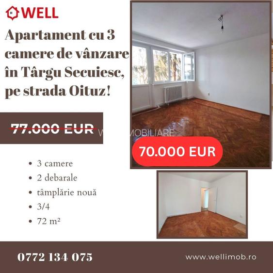 Apartament cu 3 camere de vânzare în Târgu Secuiesc, pe strada Oituz!