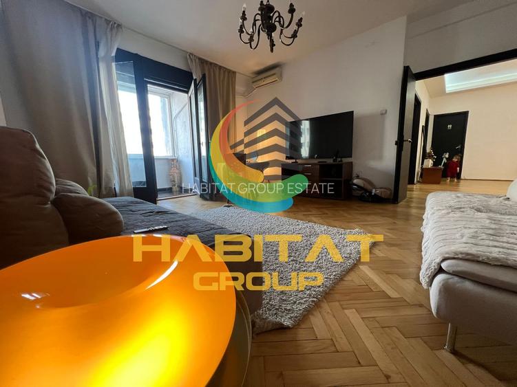 Apartamentul dispune de 3 camere si o zona de intrare de 25 mp, multiple zone de depozitare( 5 camari si debarale), un balcon de 4 mp si o pozitie excelenta langa metrou Piata Romana
