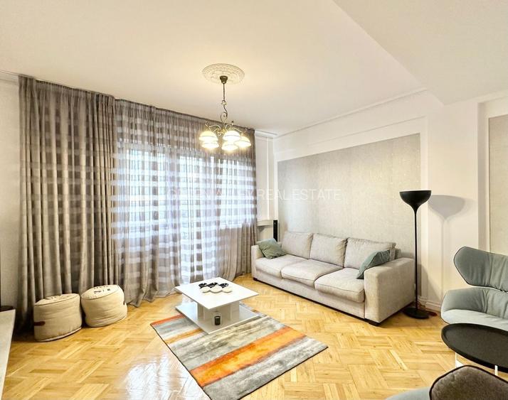 Apartamentul a fost renovat / refăcut integral, de la tencuieli, instalații, plafoane, pana la finisajele de buna calitate. Parchetul din lemn masiv de stejar este cel original, fiind recondiționat.