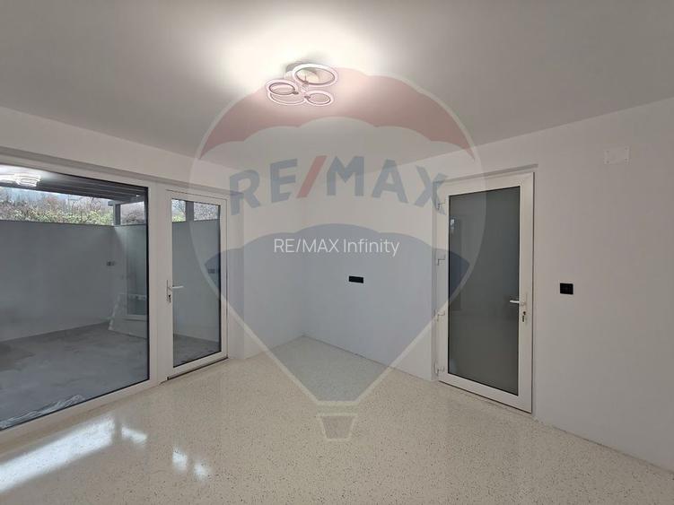 terasă acoperită, utilizabilă atât ca spațiu exterior pentru lucru, cât și ca zonă de relaxare.