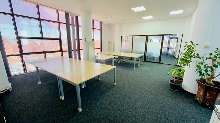 Agenția imobiliară Real Invest închiriază spațiu comercial ideal pentru birouri, situat în centrul orașului Galați. Suprafața este de 150 mp. Spațiul se află la etajul 5 și oferă vedere pe mai multe laturi, ceea ce asigură lumină naturală pe tot parcursul zilei. Dispune de toate utilitățile. Clădirea este modernă, cu fațadă din sticlă, lift și dotări actuale. Accesul este facil, iar zona oferă vizibilitate și proximitate față de instituții și zone comerciale. Prețul chiriei este de 1500 euro pe lună. Pentru detalii și programări la vizionare, contactează agenția Real Invest la numărul de telefon