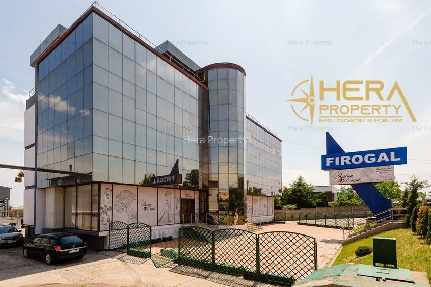 Oferta de inchiriere: o platforma logistica formata din Firogal office building - un pavilion administrativ in suprafata desfasurata totala de 1558.24 mp insotit de cinci hale industriale (418, 185, 403, 408 respectiv 407 mp) prevazute cu poduri rulante de 5 tone, deservite de o platforma betonata (3000 mp) cu macara turn de 12 tone, pretabile pentru activitati de productie, servicii industriale, distributie si comert, depozit logistic, centru/depozit logistic sau de transport, dupa caz.