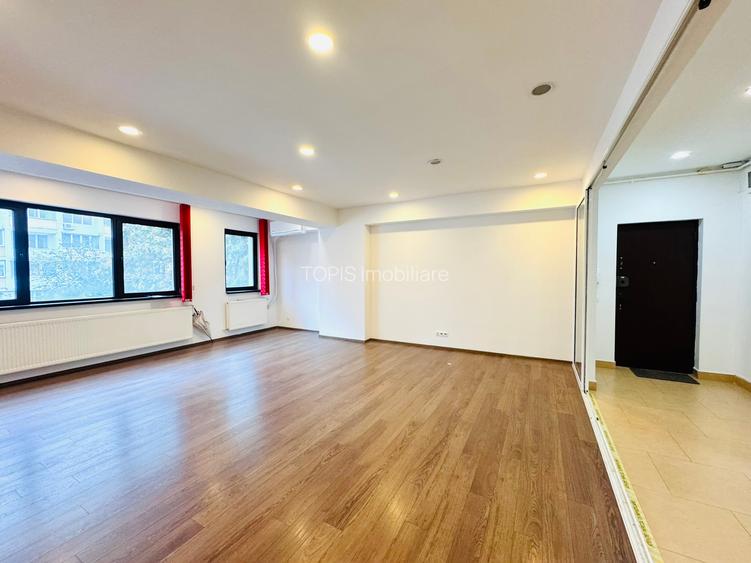 Agenția Topis Imobiliare vă propune spre închiriere un spațiu modern de birouri, cu suprafața de 130 mp, amplasat în zona Dorobanți. Spațiul este compartimentat eficient, având 4 încăperi, recepție, chicinetă și 2 grupuri sanitare, fiind ideal pentru diverse tipuri de activități. Este dotat cu centrală termică proprie, unități de aer condiționat și parchet de trafic intens, asigurând confort și funcționalitate. Clădirea beneficiază de recepție la parter, 2 lifturi și locuri de parcare subterane. Un avantaj important îl reprezintă costurile reduse de întreținere, întrucât nu se percepe taxă de mentenanță, ci doar contravaloarea utilităților. Datorită luminozității naturale și a compartimentării flexibile, spațiul este potrivit pentru orice tip de activitate. Pentru vizionări și informații suplimentare, vă stăm la dispoziție cu promptitudine. Locul de parcare este contra cost 150 Euro / luna.
