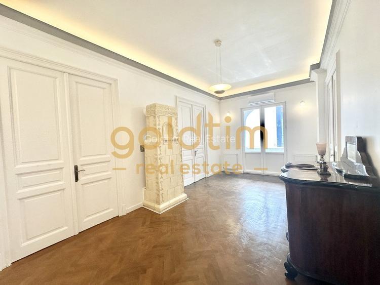 Va prezentam un superb spatiu de birou, situat la etajul 3 din 3 al unei vile interbelice din zona de referinta Dorobanti. Spatiul este compartirmentat astfel: o camera -zona de receptie din care avem acces pe dreapta la doua incaperi mari care comunica intre ele si iesire pe terasa si pe stanga alte doua incaperi mari care comunica intre ele printr-o usa evantai si iesire pe terasa. Spatiu dispune de doua bai si o bucatarie complet mobilata si utilata. Spatiu este recent renovat complet si adus la nivelul anului 2025 cu intrare electronica pe baza de cod. Au fost pastrate multe elemente originale ale casei specifice perioadei, ca sobele de teracoda reconditionate, usile de lemn, si elemnte pe terase din lemn. Spatiul se inchiriaza cu un loc de parcare in curtea imobilului. Pentru detalii si vizionari nu ezitati sa ne contactati!