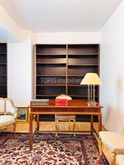 Agentia Topis Imobiliare vă prezintă un spațiu de birouri elegant, situat într-un imobil finalizat după anul 2000, în una dintre cele mai prestigioase zone ale Capitalei — Beller – Floreasca – Calea Dorobanți. Descriere generală Zona Beller este recunoscută drept una dintre cele mai exclusiviste și bine cotate zone de business și rezidențiale din centrul Bucureștiului. Situată strategic între Piața Dorobanți, Piața Victoriei și Parcul Herăstrău, oferă o accesibilitate excelentă, o imagine elegantă și o infrastructură complet dezvoltată. Străzile adiacente (Aviatorilor, Paris, Roma, Washington, Lisabona, Capitale, Rabat) găzduiesc numeroase ambasade, birouri de avocatură, clinici medicale private, sedii de firme de consultanță, showroom-uri de lux și restaurante rafinate. Accesul este facil atât cu mijloacele de transport în comun (stația de metrou Aviatorilor, linii de autobuz și troleibuz), cât și cu automobilul personal, existând multiple artere de legătură către centrul și nordul orașului. Pe lângă componenta business, zona oferă un mediu reprezentativ și sigur, ideal pentru activități de birou, servicii premium, reprezentanțe sau clinici. Prezența spațiilor verzi, a cafenelelor elegante și a clădirilor istorice reabilitate contribuie la o imagine de prestigiu și profesionalism. Detalii spațiu Spațiul este amplasat la etajul 2/4, dispune de lift, 2 băi și 3 balcoane (unul amenajat ca terasă, cu masă și 3 scaune). Compartimentare: Birou principal generos – 42 mp 3 birouri individuale – ~20 mp fiecare 2 băi Hol de acces Spații de depozitare pe lungimea holului Bucătărie mobilată și utilată complet Spațiul se predă cu bucătăria mobilată și utilată, iar una dintre camere dispune deja de mobilier de birou. Restul se predă nemobilat, însă există posibilitatea de a păstra mobilierul existent, la cerere. Avantaje: Locație premium – zonă reprezentativă de business Acces facil metrou / mijloace de transport Spațiu luminos, compartimentare eficientă Ideal pentru birouri, firme de consultanță, reprezentanțe sau clinici private Pentru vizionări și detalii suplimentare, echipa Topis Imobiliare vă stă la dispoziție cu promptitudine!
