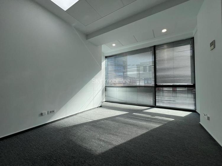 Spațiul este compartimentat și se închiriază nemobilat, exact ca în fotografii, fiind pregătit pentru amenajarea în funcție de nevoile chiriașului. Se află în stare impecabilă, iar pardoseala este acoperită cu mochetă, oferind un confort sporit pentru activități de birou.