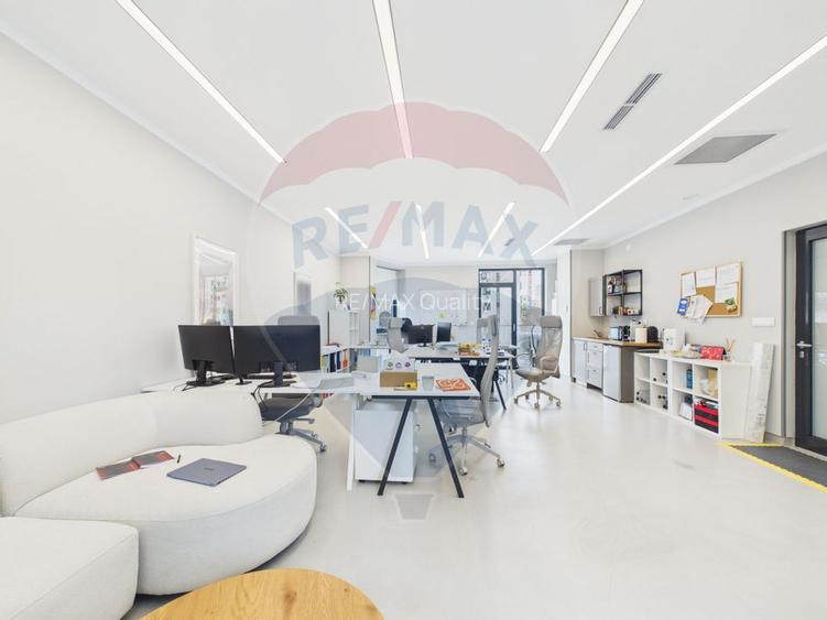 Acest spatiu poate fi potrivit pentru afacerea dumneavoastra deoarece ofera toate facilitatile necesare pentru un mediu de lucru productiv. In functie de necesitati, spatiul se poate delimita/compartimenta cu pereti din sticla.