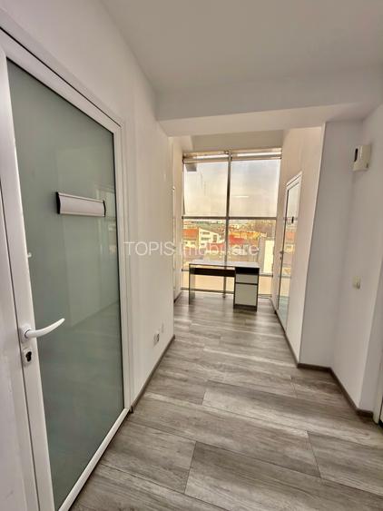 Agentia Topis va propune spre inchiriere un birou format din 2 camere separate, situat intr-o cladire de birouri clasa A, la etajul 4 din 5, cu pozitie stradala si acces facil. Imobilul este amplasat in apropierea rondului Alba Iulia, cu acces rapid catre Piata Unirii, Bd. Decebal, Nerva Traian si Octavian Goga. Cladirea este destinata exclusiv spatiilor de birouri si beneficiaza de servicii de receptie, paza 24/7 si curatenie in spatiile comune. Spatiul este complet mobilat si dotat cu aer conditionat, parchet, ferestre termopan si contorizare individuala pentru utilitati (caldura, energie electrica, apa). Costul mentenantei este inclus in pretul chiriei. Utilitatile se achita separat, in functie de consum.
