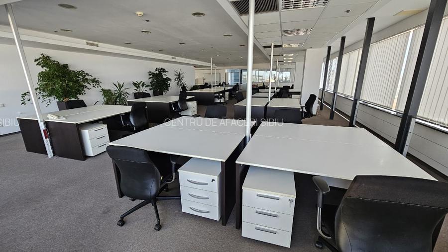 Priveliste deosebita de la etajele 5-15 , aprox. 4-500 mp/etaj, 8 lifturi -4 interioare si 4 panoramice, langa stadion si sala sporturilor in Centrul de Afaceri Sibiu.