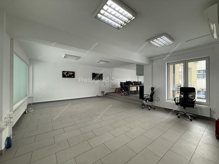 Spatiul este pretabil pentru activitati de birou si ofera standarde moderne de confort: aer conditionat, centrala termica proprie si contorizare individuala a utilitatilor.