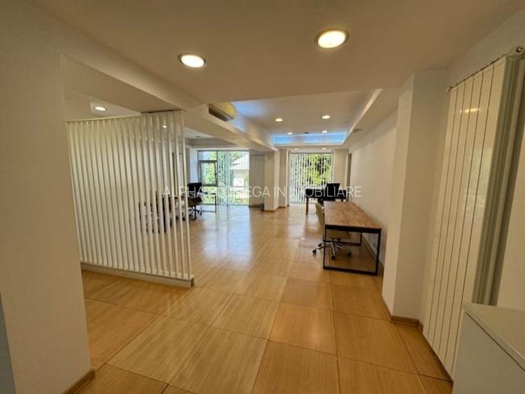 Etaj in imobil de birouri, lift ( ce se deschide pe etaj cu cartela, receptie, sofer pt preluare masina, 2 bai, aer conditionat , centrala proprie, paza asigurata de Bgs, administrator.Pentru termen lung .ET 4.