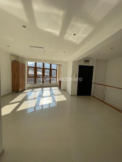 Agenția Topis Imobiliare vă propune spre închiriere un spațiu de birouri modern, desfășurat pe două niveluri (parter înalt și etaj 1), cu o suprafață utilă de 150 mp, situat în zona Victoriei – una dintre cele mai bine conectate și prestigioase zone de business din București. Spațiul beneficiază de compartimentare eficientă și funcțională, fiind ideal pentru activități de birou, consultanță, IT sau servicii profesionale. Compartimentare: 	•	Parter înalt: zonă open space, birou individual, grup sanitar, balcon, chicinetă, centrală termică proprie; 	•	Etaj 1: două birouri individuale, două grupuri sanitare, zonă open space, două balcoane; 	•	Accesul între niveluri se realizează prin scară interioară. Proprietatea dispune de finisaje moderne și oferă un mediu de lucru confortabil și bine organizat. Costurile de întreținere sunt reduse, utilitățile fiind contorizate individual și achitate în funcție de consum. În plus, în prețul chiriei este inclus un loc de parcare subteran, un avantaj important în această zonă. Spațiul este disponibil imediat și reprezintă o alegere excelentă pentru companii care își doresc vizibilitate, acces facil și un sediu reprezentativ. Pentru informații suplimentare și programarea unei vizionări, echipa Topis Imobiliare vă stă la dispoziție cu promptitudine.