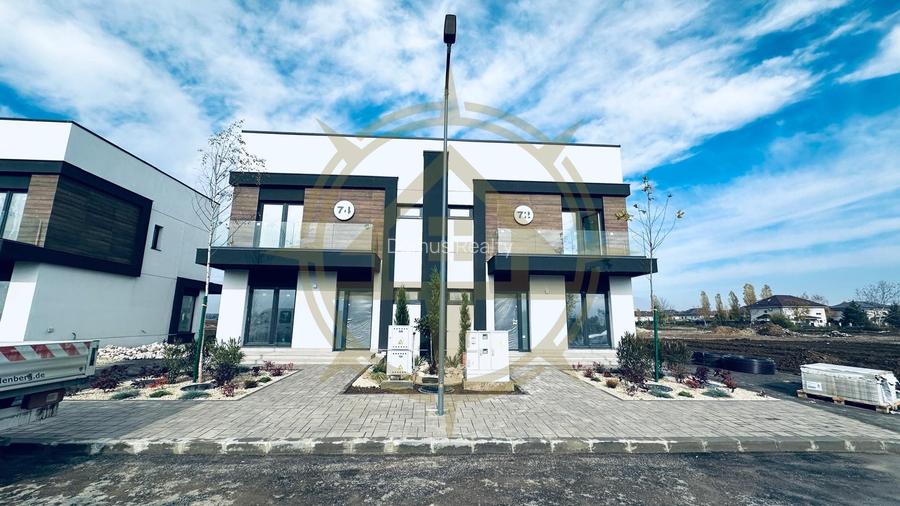 Casa este bine compartimentata, avand un total de 4 camere, din care 3 dormitoare, un living spatios, o bucatarie, 3 bai, o gradina si 2 locuri de parcare exterioare.