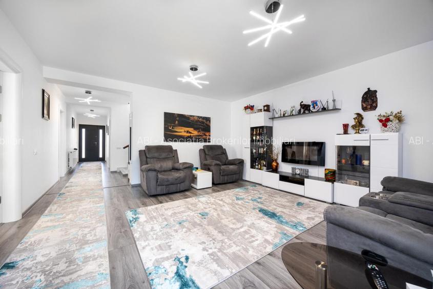 Suprafata totala a casei este de 221,74 mp, iar suprafata utila este de 180,42 mp. Pe langa cele 5 camere si 3 bai cu suprafete generoase, te vei bucura si de o terasa la etaj, perfecta pentru serile de vara, de o terasa cu vedere spre curtea libera de aprox 300 mp, langa bucataria de vara, unde poti servi masa la aer curat, dar si de un balcon propriu la dormitorul matrimonial.