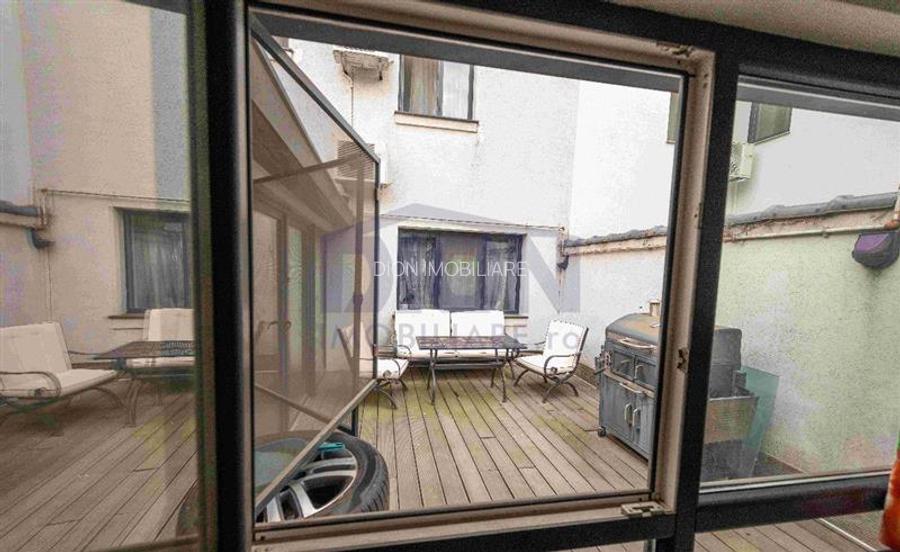 Curtea interioară oferă o terasă intimă, perfectă pentru relaxare, iar curtea din față poate fi amenajată ca garaj sau grădină. Parcare liberă disponibilă în fața casei.