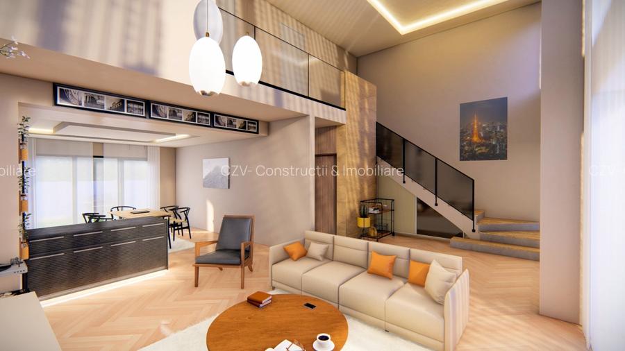 Living Loft – dublă înălțime, senzație de spațiu premium și conexiune cu exteriorul.
