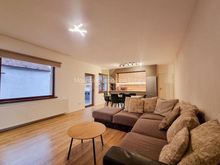 Casa este mobilată și utilată. Livingul va fi amenajat cu un colțar modern, unul dintre dormitoare este complet mobilat, iar cel de-al doilea rămâne liber pentru a fi adaptat nevoilor viitorilor chiriași (birou, cameră de copil etc.).
