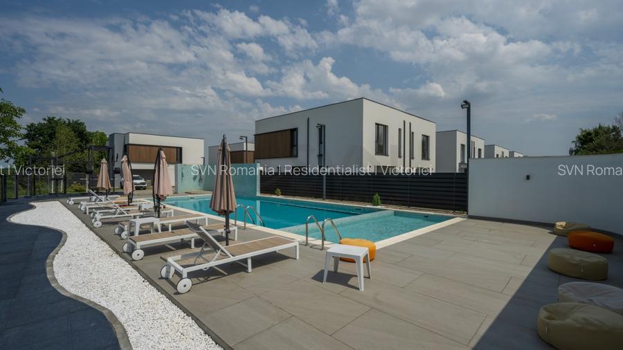 Situata intr-un complex de vile tip duplex, amenajat cu piscina exterioara si loc de joaca.