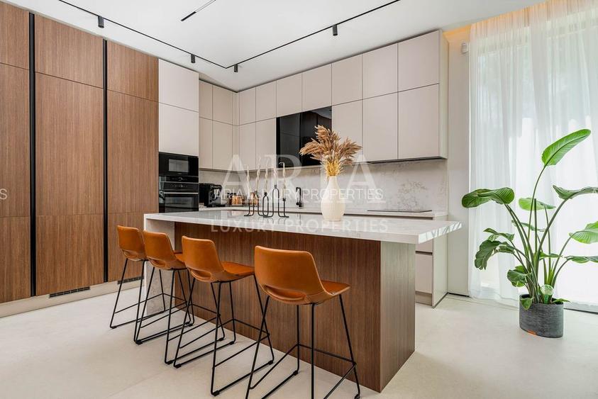 Vilele impresionează prin designul modern și materialele de cea mai înaltă calitate. Fiecare locuință dispune de o zonă SPA privată, cu saună panoramică și jacuzzi exterior, perfecte pentru momente de relaxare. Dormitoarele sunt dotate cu dressinguri personalizate, realizate în Italia, iar bucătăria este de proveniență germană, complet echipată cu aparatură inteligentă de ultimă generație.