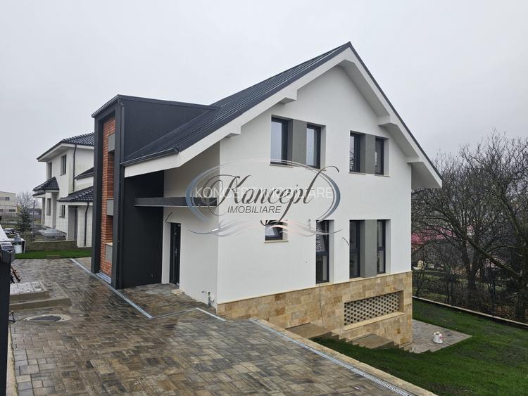 Koncept Imobiliare va ofera spre vanzare o casa individuala situata in Chinteni, intr-o zona linistita de case noi, cu orientare Sud-Est si acces facil catre Cluj-Napoca. Proprietatea se afla la doar cateva minute de statia de autobuz si magazinul Profi, pe o strada retrasa, cu trafic redus, oferind intimitate si luminozitate pe tot parcursul zilei. Imobilul este dispus pe demisol, parter si etaj, avand o suprafata utila de 215 mp si un teren de 500 mp, cu curte amenajata cu gazon, acces pietonal si auto pavat, prevazuta cu poarta automatizata la intrare pentru confort si siguranta sporita. Casa se preda semifinisata, cu instalatii electrice si sanitare trase pe pozitii, pereti gletuiti si tencuiti, sapa autonivelanta, tamplarie PVC tripan si termoizolatie realizata cu caramida de 30 cm, polistiren de 15 cm si spuma cu celula inchisa pentru acoperis. Exteriorul este finisat cu caramida aparenta de calitate, travertin si pervaze din granit, iar acoperisul este realizat cu tabla Bilka. Sistemul de incalzire in pardoseala este montat, centrala urmeaza sa fie instalata de constructor, iar proprietatea beneficiaza de infrastructura pregatita pentru montarea panourilor fotovoltaice. La parter este deja trasa pozitia pentru instalarea unui semineu, oferind posibilitatea de a crea o zona de relaxare calda si confortabila. Compartimentarea este gandita pentru functionalitate si confortul unei familii. Parterul include un hol generos, living cu bucatarie open-space, dormitor si baie, completate de posibilitatea amplasarii semineului in zona de zi. Etajul pune la dispozitie trei dormitoare luminoase, o baie, o spalatorie si un dressing. La demisol se afla un spatiu open-space versatil, potrivit pentru hobby, fitness sau socializare, impreuna cu o terasa acoperita prevazuta cu instalatii pentru bucatarie de vara, zona de grill sau barbeque, precum si pozitie pentru semineu sau vatra exterioara. Cele doua locuri de parcare din curte si posibilitatea de compartimentare a demisolului sau de inchidere a terasei ofera flexibilitate suplimentara. Calitatea constructiei este un element definitoriu, fiind realizata fara compromisuri de spatiu sau materiale, cu accent pe rezistenta, confort termic si posibilitatea personalizarii ulterioare. Datorita amplasarii, luminozitatii, spatiilor generoase si infrastructurii moderne, casa reprezinta o optiune excelenta pentru o familie care isi doreste liniste, acces rapid spre Cluj si o locuinta pe care o poate finisa dupa propriul stil. Pentru informatii suplimentare, programarea unei vizionari sau pentru a afla oferta noastra completa va stam la dispozitie telefonic, prin e-mail sau la sediul agentiei noastre, pe str. Aviator Badescu, nr. 19, Cluj-Napoca.