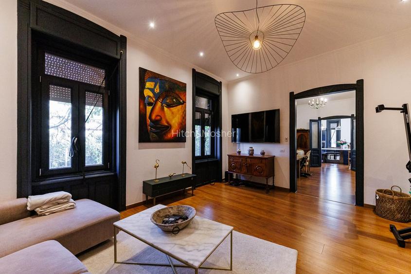 Living room generos, cu un tavan înalt de 4.30 m, care oferă un sentiment de spaciousitate și lumină naturală.