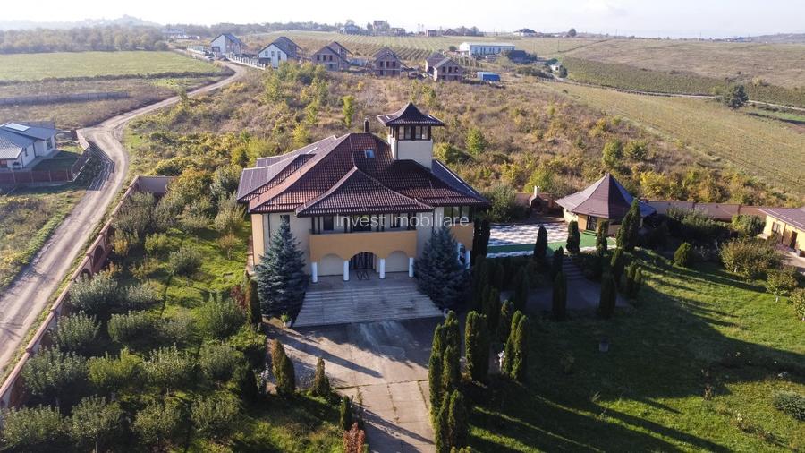 Situata intr-o zona rezidentiala privata, proprietatea ofera acces facil la orasul Iasi si linistea specifica unei locatii departe de agitatia urbana. Datorita spatiilor generoase, a facilitatilor exterioare si a privelistilor panoramice, proprietatea se preteaza atat pentru o resedinta exclusivista, cat si pentru un circuit turistic de lux. Fie ca este folosita ca locuinta permanenta, casa de vacanta sau pensiune de lux, aceasta proprietate ofera posibilitati diverse de utilizare.