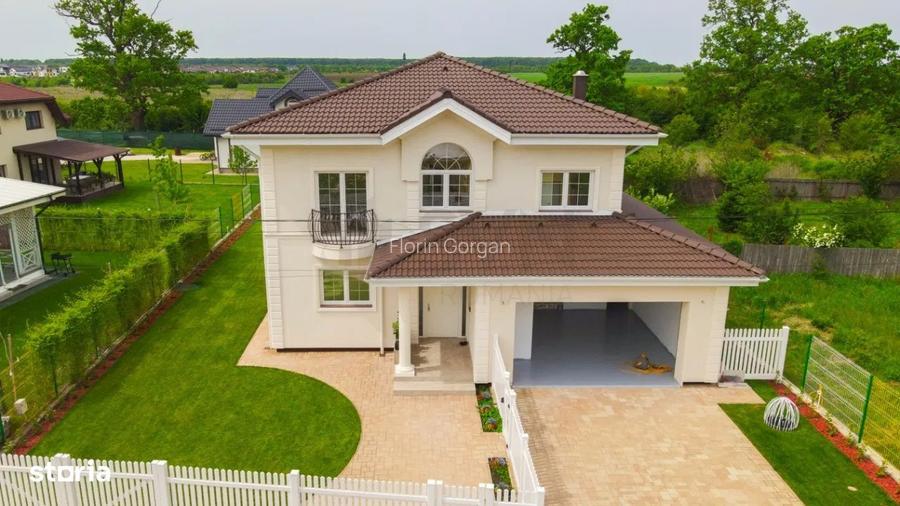 • Dotări Moderne: Încălzire în pardoseală, ferestre mari tripan Rehau Geneo cu posibilitatea montarii unor draperii automate, pardoseală din piatră naturală (grosime de 2 cm) la parter, șemineu pe lemne sau brichete în living, etaj mochetat. Casa este prevazuta cu peste 90 de prize de curent electric pentru a preintampina nevoia de incarcare a cat mai multor dispositive in acelasi timp.