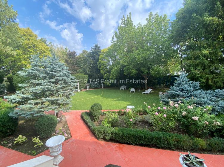 Grădina este un adevărat paradis natural, cu o varietate de specii de arbori și plante, de la brazi argintii la hortensii și trandafiri.