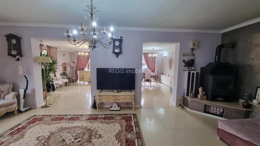 Regis Imobiliare va prezinta spre vanzare o proprietate completa, gandita pentru confort real si costuri de intretinere reduse, situata pe un teren de 445 mp, cu 250 mp utili si 300 mp construiti, deschidere la strada si curte complet amenajata.Construita in 2011 din BCA, cu izolatie termica si finisaje exterioare din piatra de rau, casa ofera un echilibru foarte bun intre rezistenta, eficienta si aspect. Tamplaria din lemn cu geam termopan si materialele folosite la interior, gresie si parchet, completeaza un spatiu bine intretinut si pregatit pentru locuire.Compartimentarea este aerisita si functionala, cu 3 camere, doua bai, living si dining generos, bucatarie separata, dressing si camera de depozit. Exista si balcon, iar fiecare spatiu este gandit pentru utilizare practica, fara pierderi inutile de suprafata.