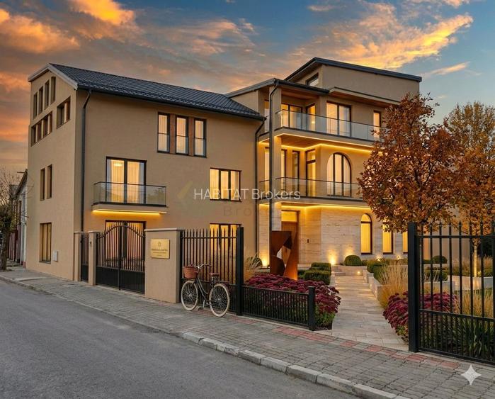 Rezidențial: O vilă urbană de lux, cu zone de zi ample la parter și spații fluide, arhitecturale, la etaj și mansardă.