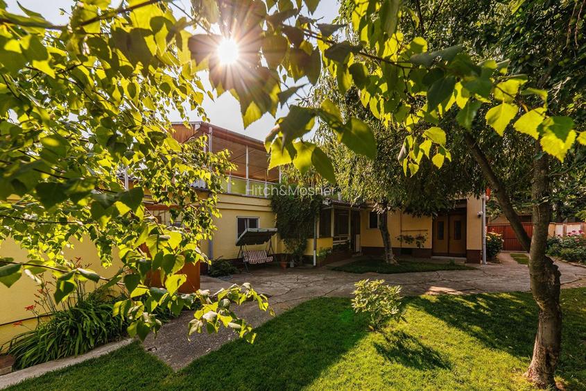 Proprietatea oferă acces auto, garaj, curte amenajată și grădină matură, perfectă pentru petrecerea timpului în aer liber.